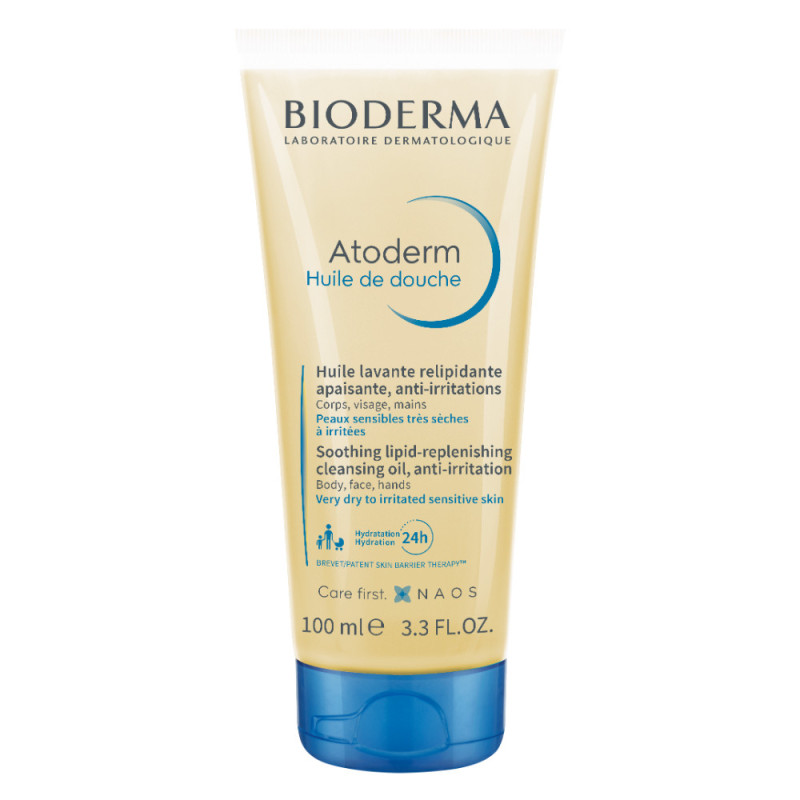 Atoderm Huile de douche is BIODERMA's best-selling and highly-rated anti-itch shower oil or body wash suitable for the dry, itchy to eczema sensitive skin of babies, children and adults, including newborns.