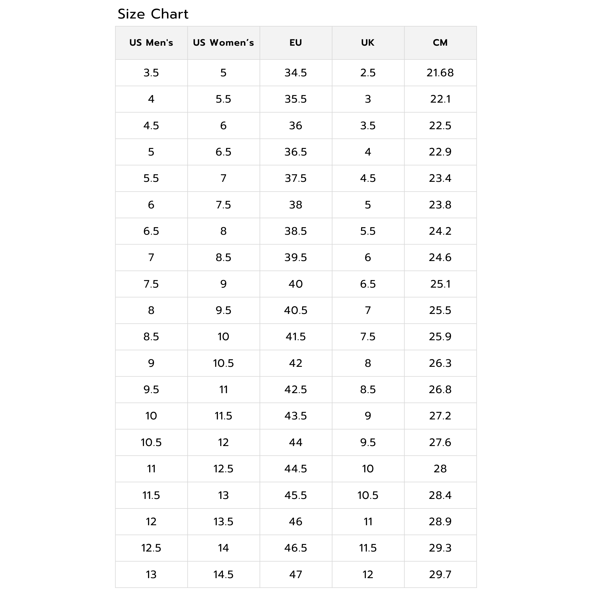 Looking for size chart?