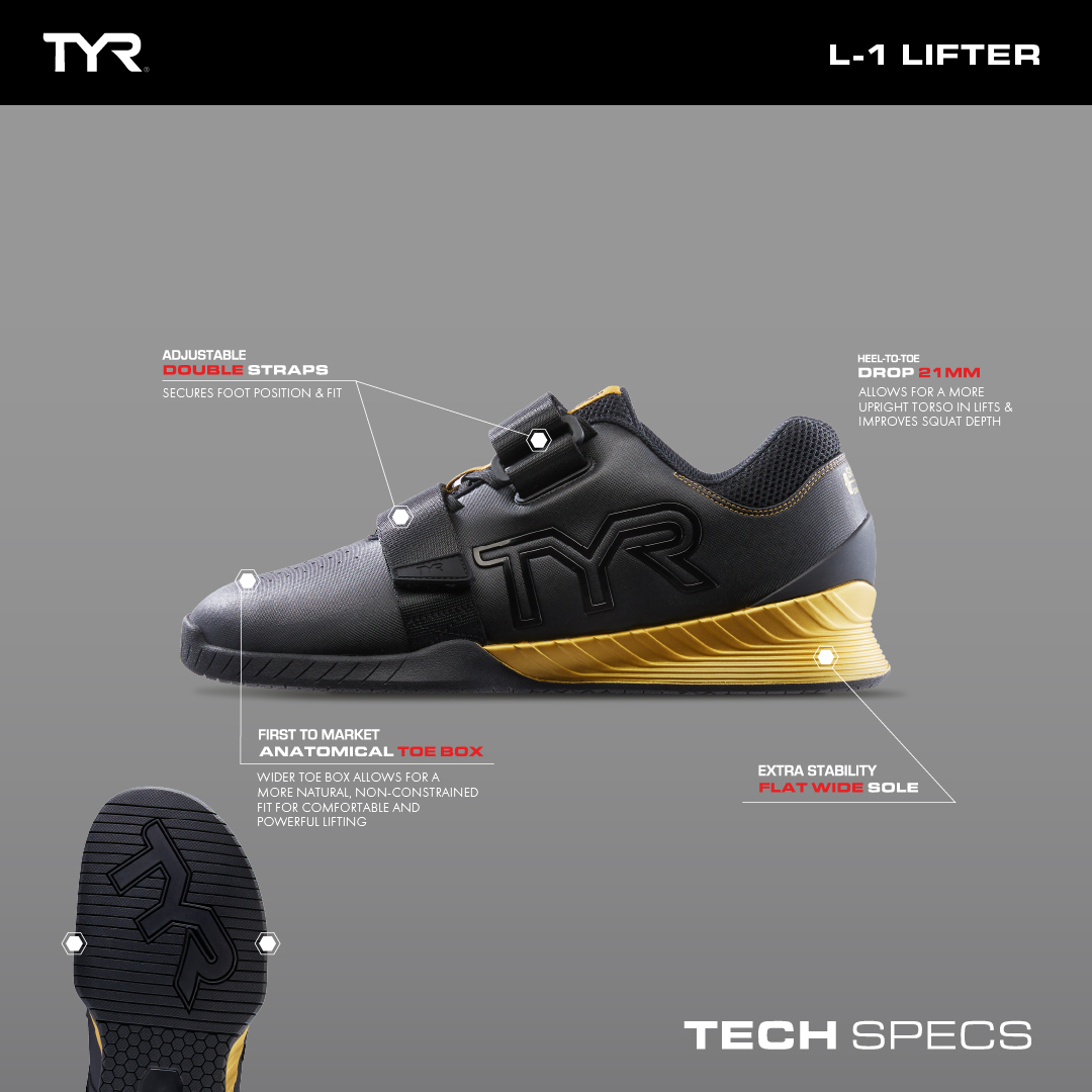 Stay grounded and build your power with TYR’s L-1 Lifter. The most anatomical lifting shoe on the market, TYR’s L-1 allows for natural foot movement and added power, while the 21mm heel-to-toe drop deepens movements and increases stability.